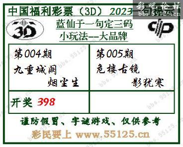 [彩吧]福彩3D23005期蓝仙子一句定三码字图谜