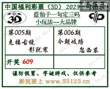 [彩吧]福彩3D23006期蓝仙子一句定三码字图谜