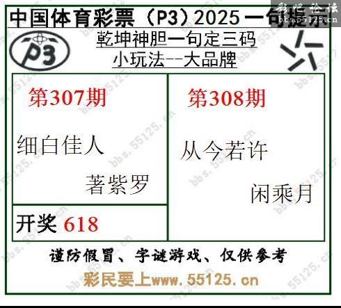 [彩吧]排列三25308期乾坤一句定三码字图谜